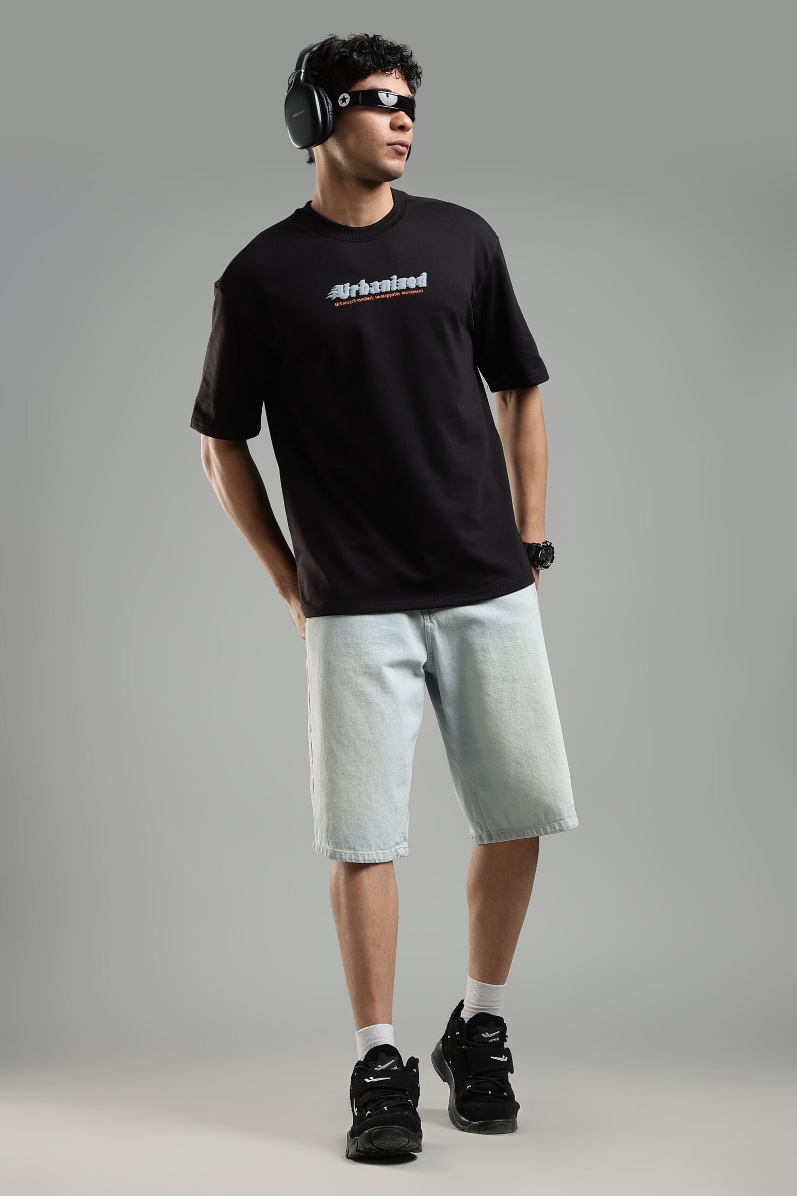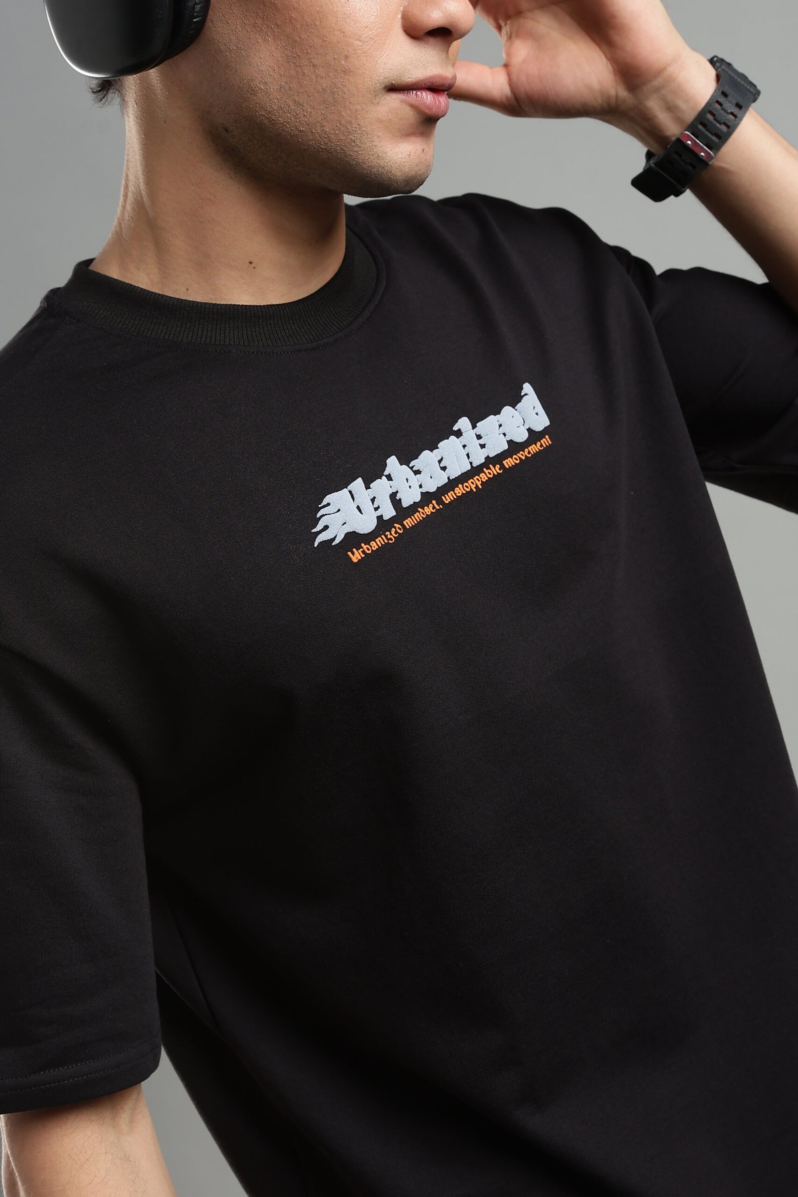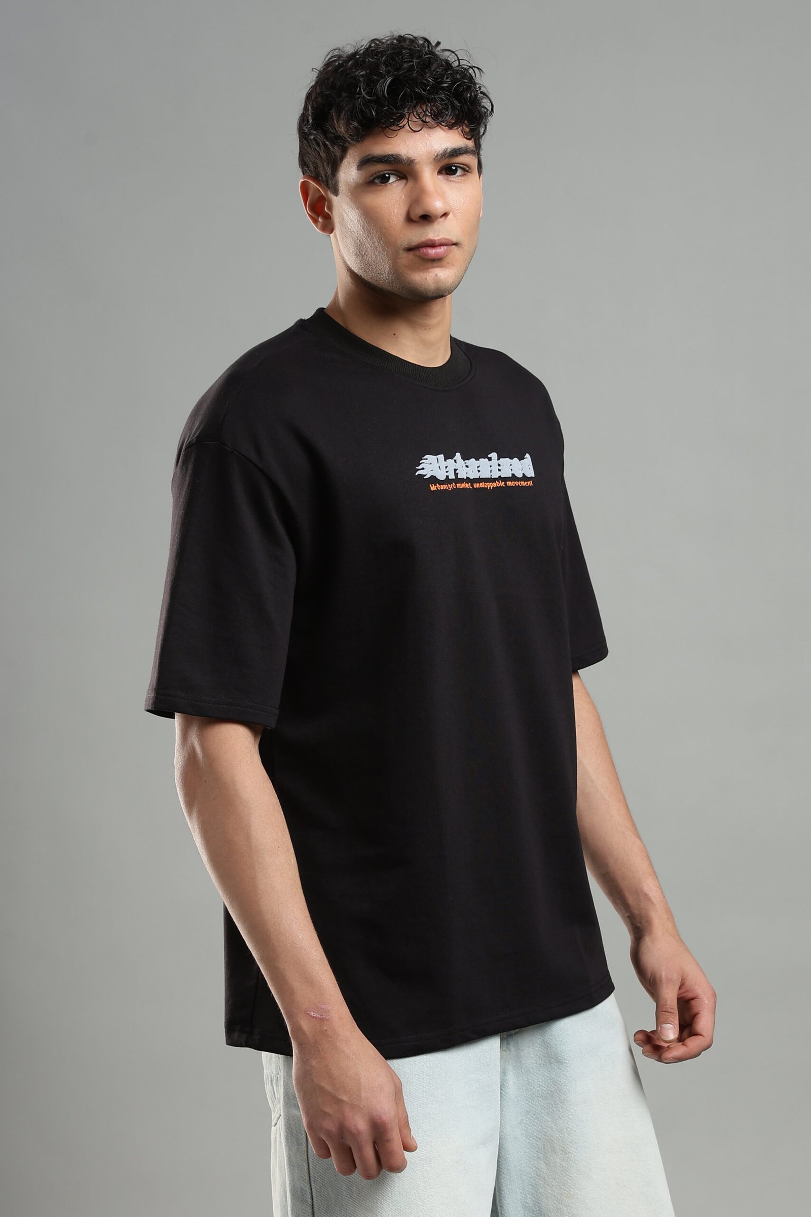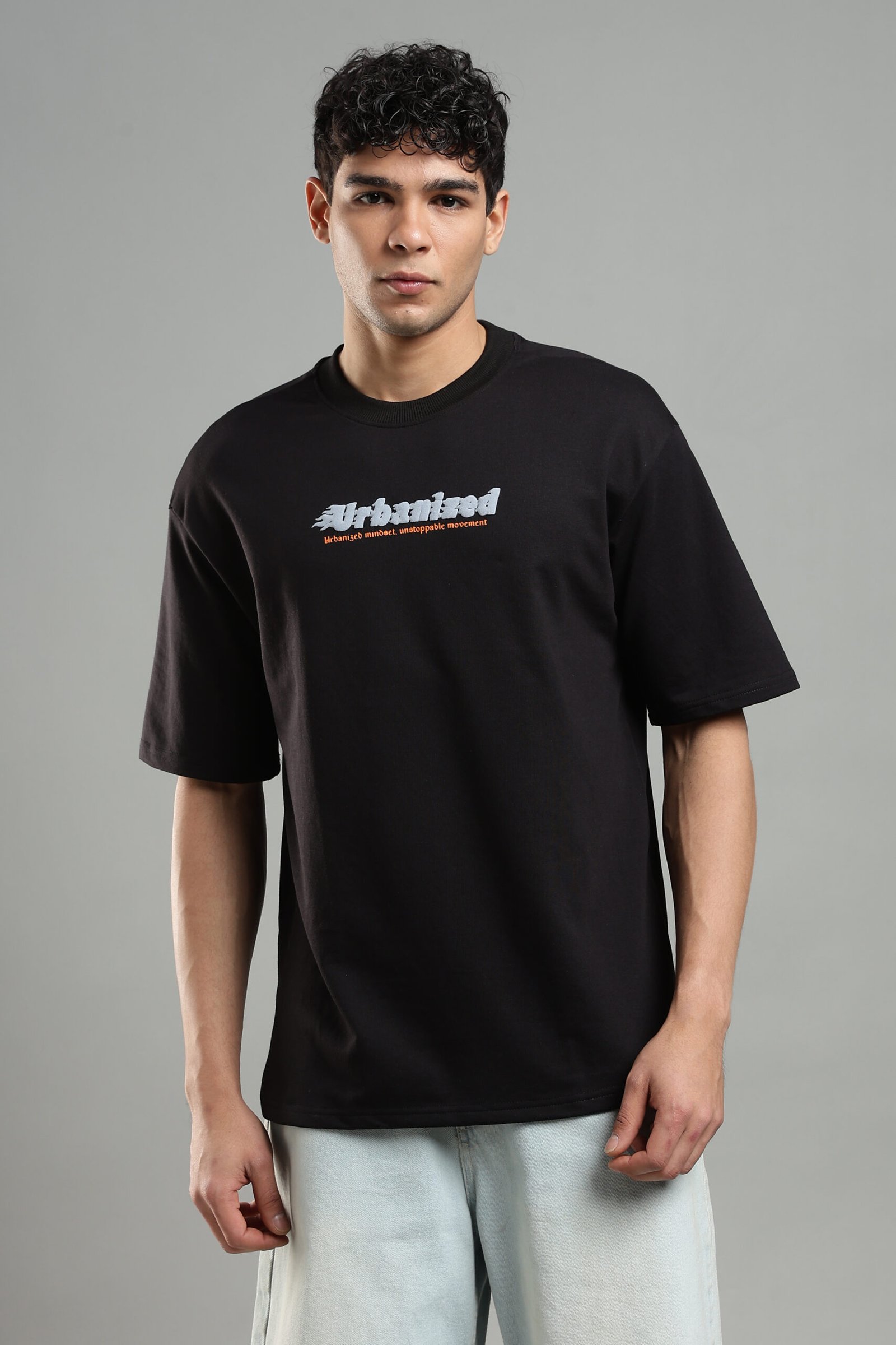 A must-have essential, the Urbanised Black oversized T-shirt delivers timeless streetwear appeal. Its versatile black tone and relaxed fit make it perfect for daily wear, pairing easily with jeans, joggers, or layered outfits.